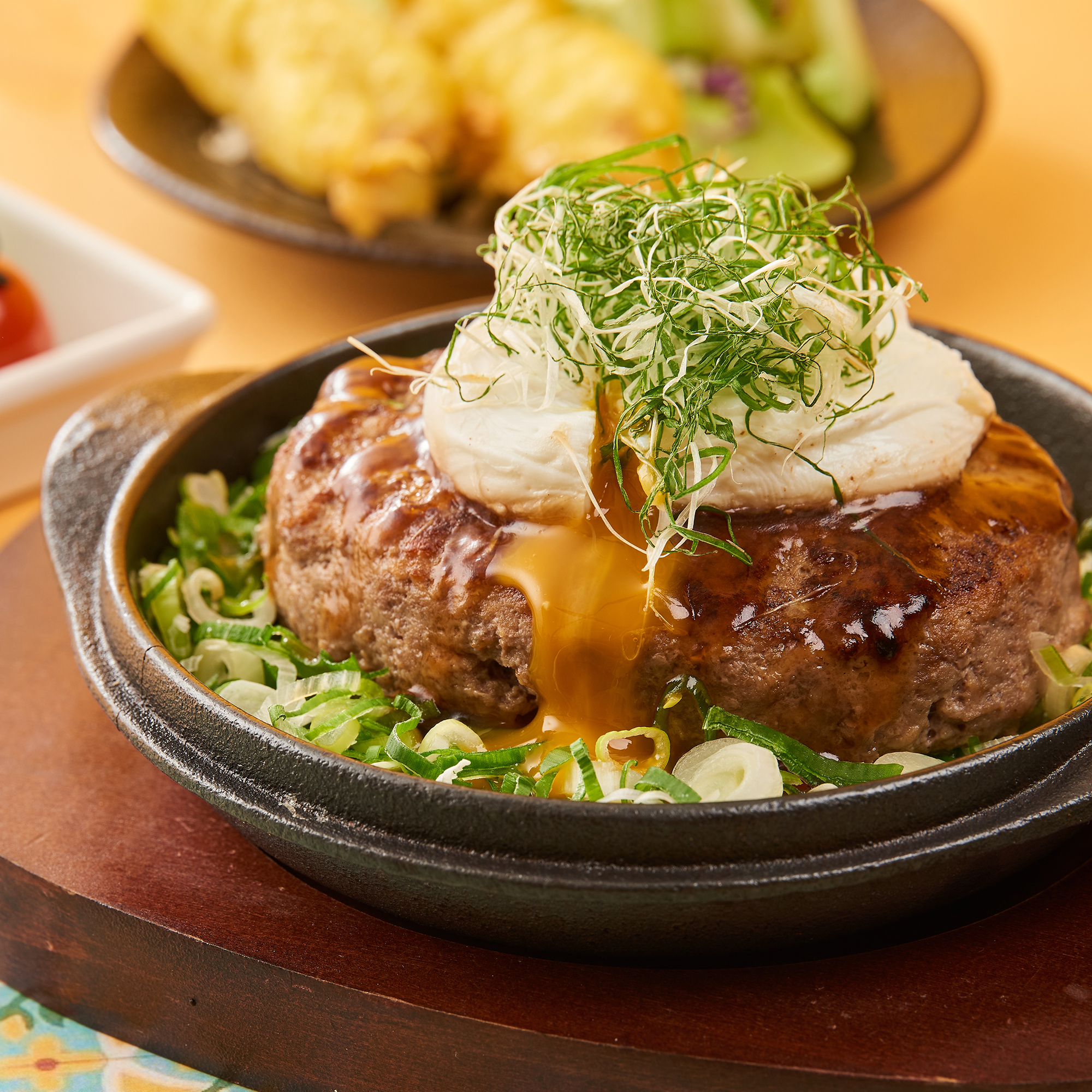 清甜爽口的宜蘭三星蔥搭配多汁和牛漢堡排,樂雅樂秘製照燒醬、半熟水波蛋與增添口感的高麗菜,黃金比例的風味,一口上癮。